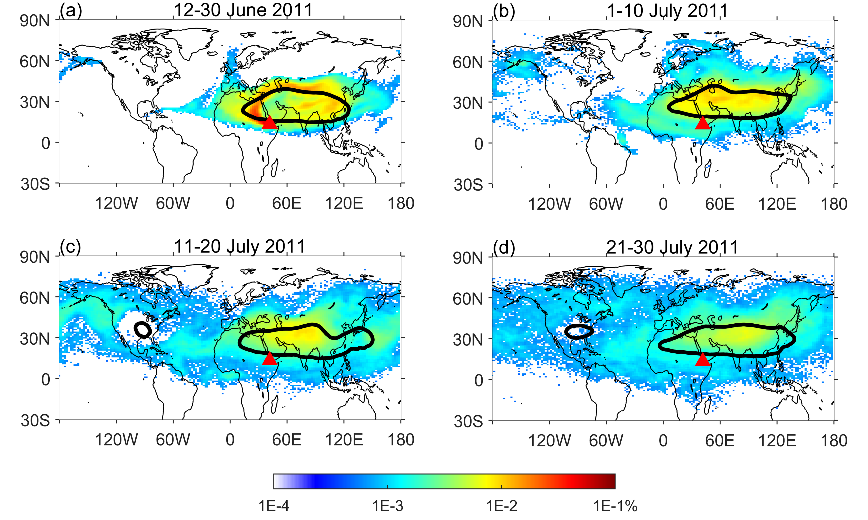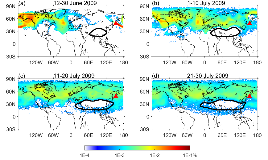 亚洲夏季风系统显著改变了北半球,尤其是亚洲地区的上对流层-下平流层区域(UTLS)火山气溶胶的分布,增加火山气溶胶在亚洲区域的影响路径和范围,是影响亚洲地区平流层-对流层大气成分交换过程的关键天气过程。