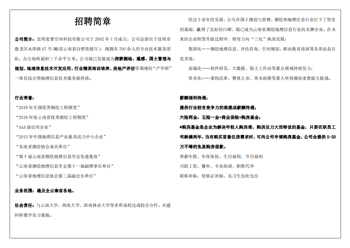 昆明麦普空间科技有限公司将于5月13日到公司举行专场招聘。