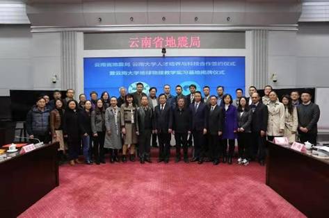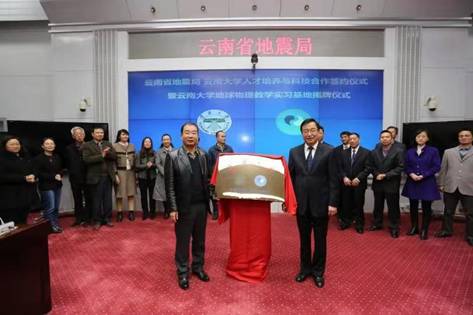 11月29日上午,伟德bv1946与云南省地震局关于人才培养与科技合作的框架协议书签署仪式暨伟德bv1946地球物理教学实习基地揭牌仪式在省地震局隆重举行。