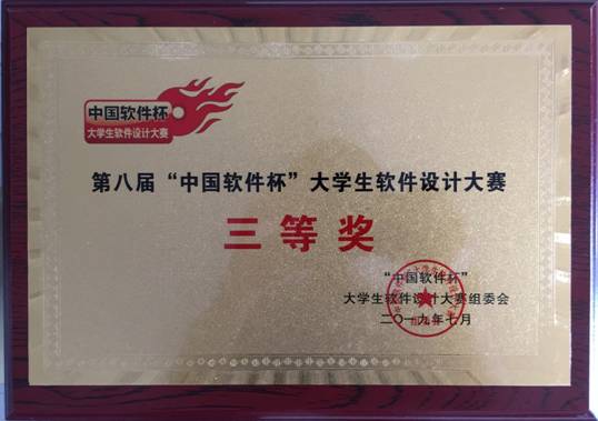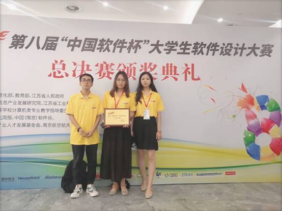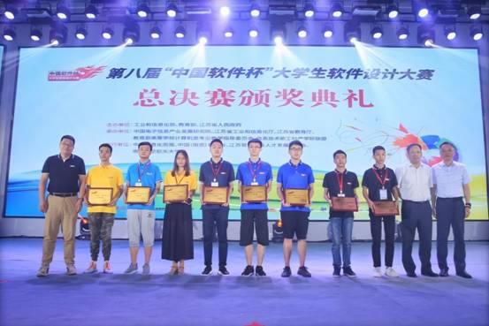 2019年7月15日至19日,由工业和信息化部、教育部和江苏省人民政府主办的国家级赛事——第八届“中国软件杯”老员工软件设计大赛决赛在南京航空航天大学将军路校区举行。公司赵飞老师指导的富瑶、于嫒平和李宇宸团队以赛题《基于GIS技术的生态环境演进过程可视化实现》从5254支队伍中脱颖而出晋级决赛,获得了第八届“中国软件杯”老员工软件设计大赛决赛三等奖,并在总决赛颁奖礼中作为三等奖代表上台领奖(左4)。