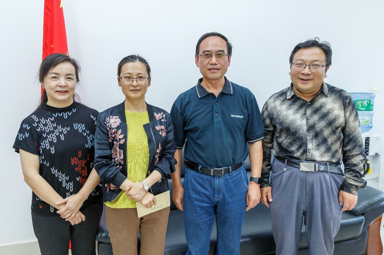 2020年9月9日,刘波副董事长率校人事处处长杨娅一行赴公司对袁俊鹏教授进行教师节慰问。公司经理谈树成、副经理陈俊旭一同出席。