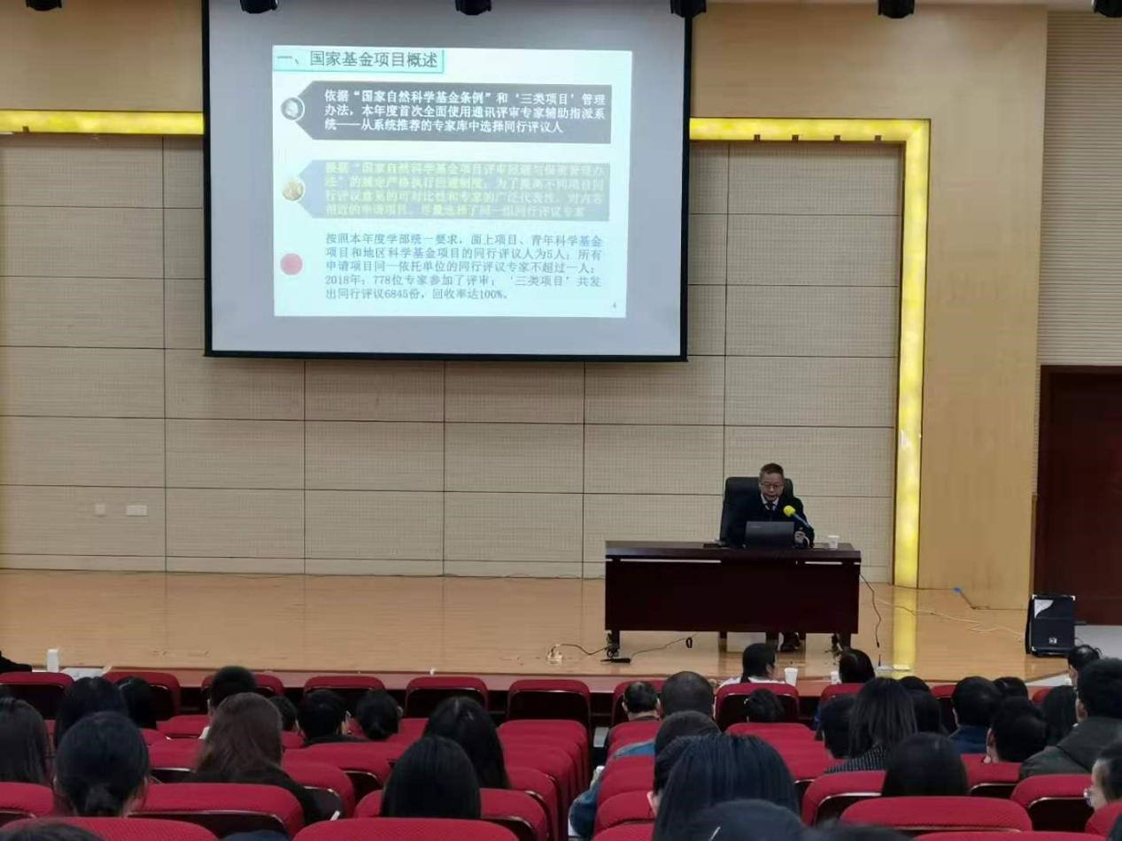 孙院士向在场师生详细解读了近年来国家自然科学基金的基本情况与变革趋势,通过分析项目申请过程存在的各种问题与不足,给出了其独到的见解。孙院士曾获国家杰出青年科学基金并入选中国科公司百人计划项目,是国家基金委重点和创新群体项目首席科学家,曾任中国科公司测量与地球物理研究所所长,中国测绘学会和湖北省测绘学会副理事长,国家基金委学科组评审专家、国家科技奖励和教育部学科(学位)点通讯评审专家及相关国际知名期刊的编委,主持过面上项目、重点项目、杰青项目、创新群体等项目,经费超过2000万,在自然科学基金项目申请及评审方面有着近20年的丰富经验。孙院士的解读和建议对场教师在以后申请科研基金项目上起到了很大的启发作用。
