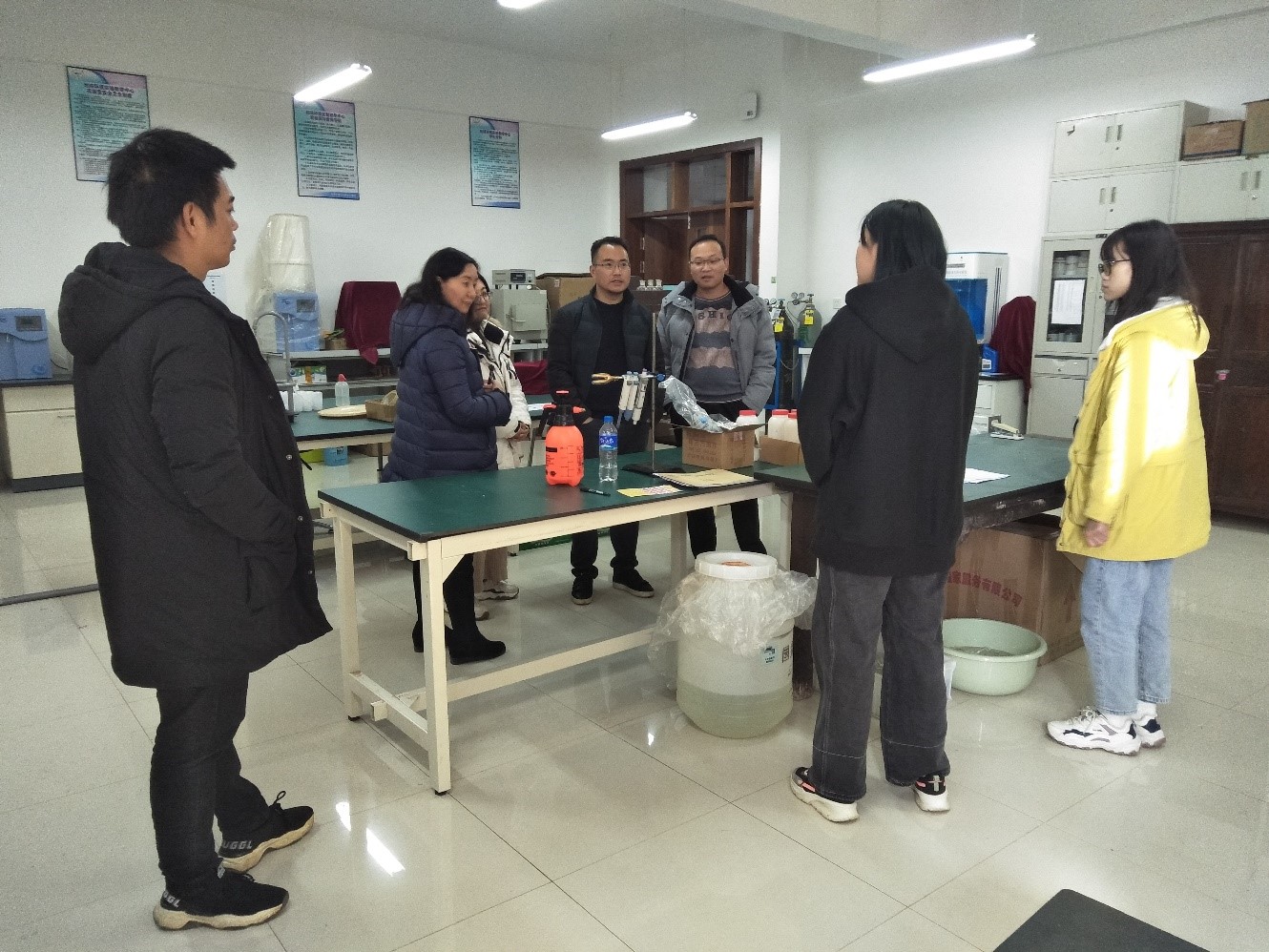 2020年12月23日,公司资产与实验室管理处李雪、于文华、土琦老师一行到公司喀斯特水实验室、土壤实验室进行实验室建设、规范管理及安全专项检查,bevictor伟德官网副经理赵志芳、实验中心常务副主任何小虎、喀斯特水实验室负责人刘宏、土壤实验室负责人和克俭、公司安全员张劲松等人陪同参与检查。