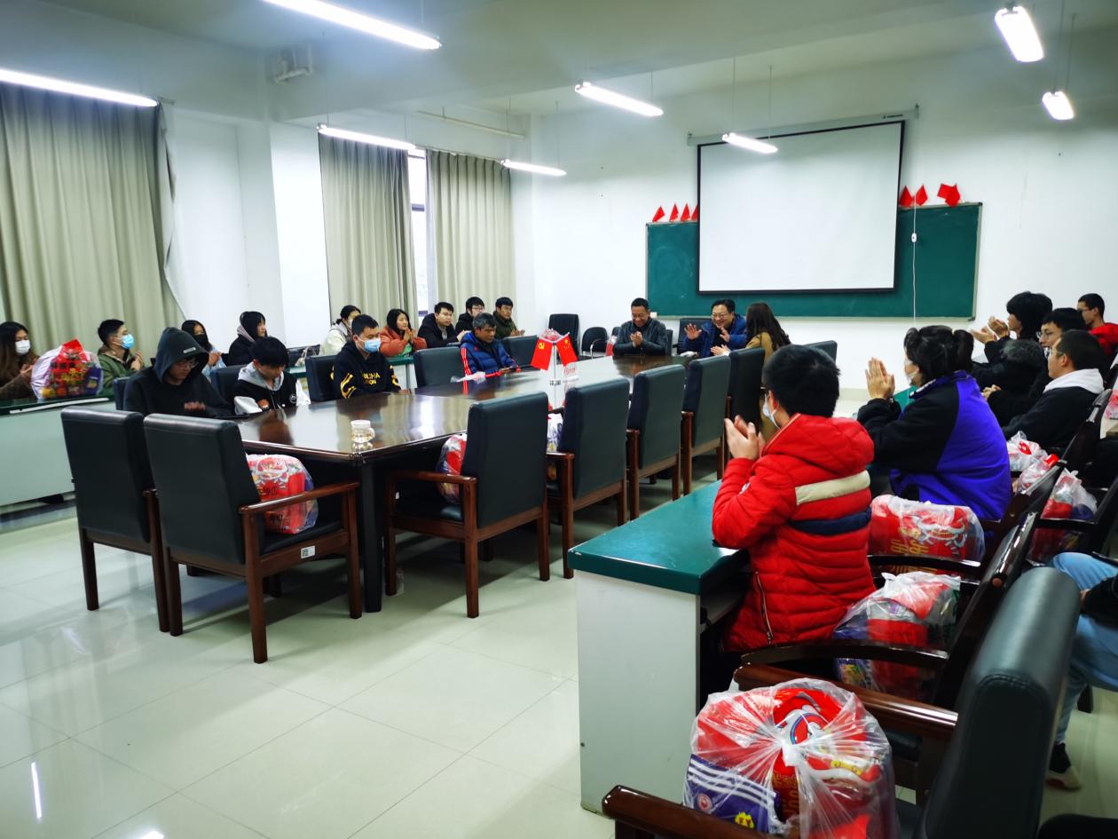 最后,老师们为留校员工发放了春节礼包,将关爱和温暖传递给每一位留校员工,让同学们留校宛若回家,祥和温暖过春节!