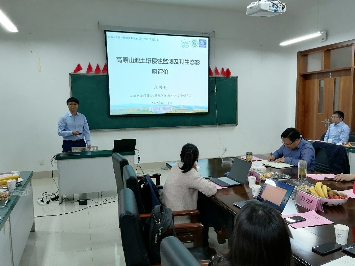 段兴武介绍了我国土壤侵蚀的现状,指出高原山地地区土壤侵蚀情况尤为严重,制约了我国西南地区,尤其是云南省的生态环境建设和农业发展。进行精确的土壤侵蚀监测及其生态影响评价,有望改善云南省高原山地地区的土壤侵蚀,为云南省的生态文明建设贡献力量。同与会人员分享了他的系统研究成果、最新研究进展以及他对学科、专业建设和人才培养的见解。