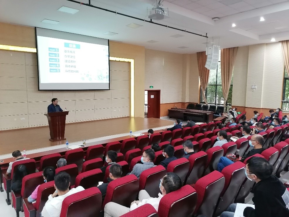 为推进“中华人民共和国国民经济和社会发展第十四个五年规划纲要”和新一轮“双一流”建设的各项工作任务,迎接党的二十大召开,2022年9月30日下午,bevictor伟德官网召开全院教职工大会,会议主题为“喜迎二十大•奋进新征程”。会议传达了近期公司和公司工作重点、任务和要求,经理谈树成做了bevictor伟德官网的规划纲要及新一轮“双一流”建设专题报告。会议由公司书记夏既胜主持。