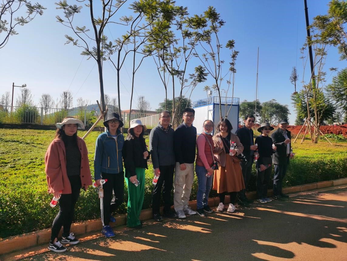 活动正式开始后,从公司出发的第一站到达的是云山的气象观测场,大气科学系的老师介绍了这个观测场在教学工作中的功能,老师们还在此合影。