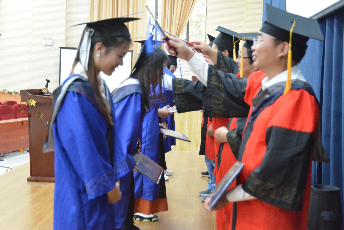 公司学术委员会成员为全体博士、硕士、本科毕业生进行学位授予仪式及拨穗礼。身着学位服,头戴学位帽的毕业生们依次走上台,穗熟拨向左,证书握在手,高飞已悄临。公司学术委员会的老师们满怀笑意,欣慰而高兴地向每一位毕业生送上了真挚的毕业祝福。