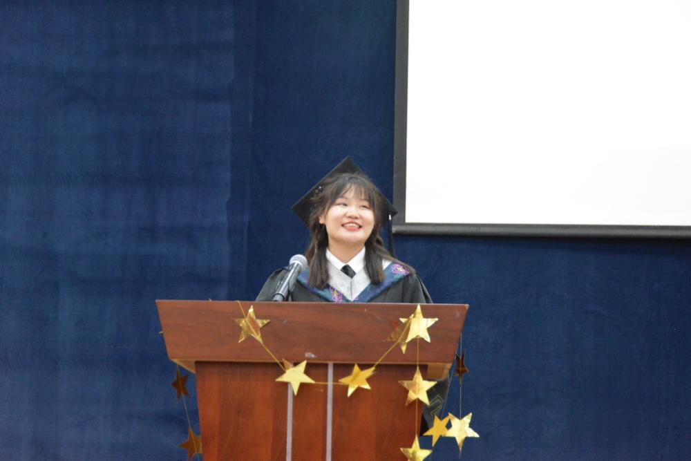 博士毕业生代表文大勇、硕士毕业生代表邓选伦、本科毕业生代表袁又佳上台发言,他们与同学们共同回忆一起走过的大学时光、生活的点点滴滴,分享了自己在云大的求学经历,对母校的培养、老师的引导和同学们的陪伴表示了真切的不舍与感激之情。在新的人生起点,生逢盛世,肩负重任,他们纷纷表示,要立志在未来的舞台上展现云大人的青春风采,有为当下,不负韶华。