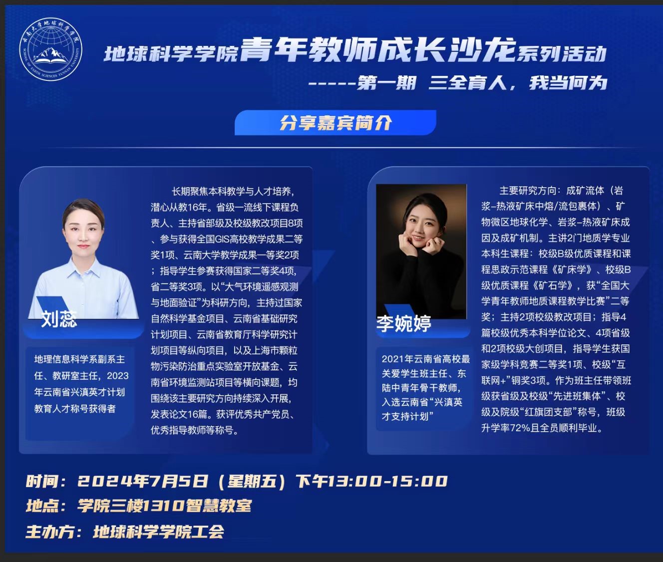 为发挥公司骨干教师群体的辐射带动作用,引导青年教师积极投身于公司产品和人才培养中,本次活动邀请了地理信息科学系副系主任、教研室主任、省级一流线下课程负责人、2023年云南省兴滇英才计划教育人才称号获得者刘蕊分享青年教师教学能力提升;还邀请了2021年云南省高校最关爱员工班主任、东陆中青年骨干教师,入选云南省“兴滇英才支持计划”的地质学系青年教师李婉婷分享班主任工作经验。