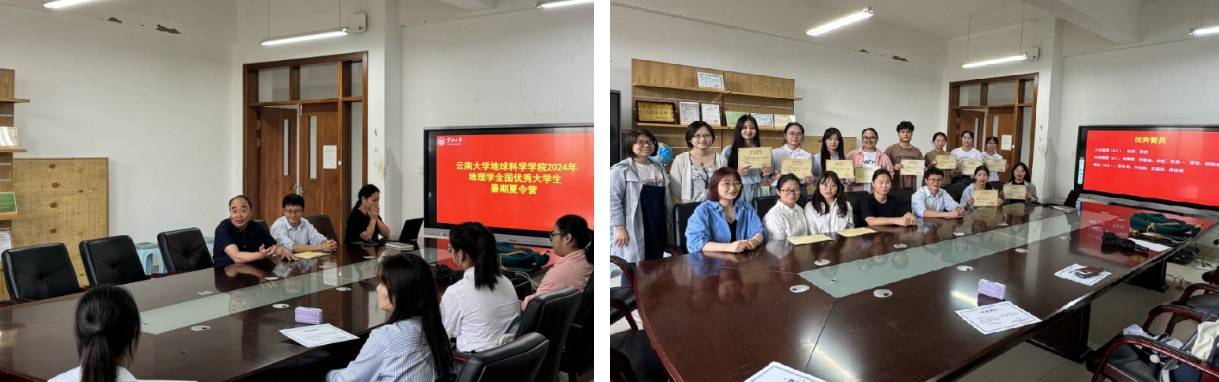 随后,面向地理学的四个二级学科自然地理学、人文地理学、地图学与地理信息系统、环境地质学等,陈俊旭和赵志芳分别作了《自然地理学前沿云南省水资源开发与高效利用》《面向一带一路中老孟缅资源环境遥感监测研究进展》的精彩报告,何云玲、杨梦诗、罗新、男顶也分别从自然地理学研究发展趋势与热点、星载SAR/InSAR技术定量解析地质灾害和地表过程机制、人工智能与遥感、全球洪涝灾害模拟与预报等方面为营员们做了学术报告。报告内容涵盖地理学科前沿和进展、研究团队特色和成果、学科交叉融合和理论创新、地理学前沿应用和实践案例等。同学们围绕讲座内容积极提出问题,与报告嘉宾进行交流和探讨,气氛热烈。