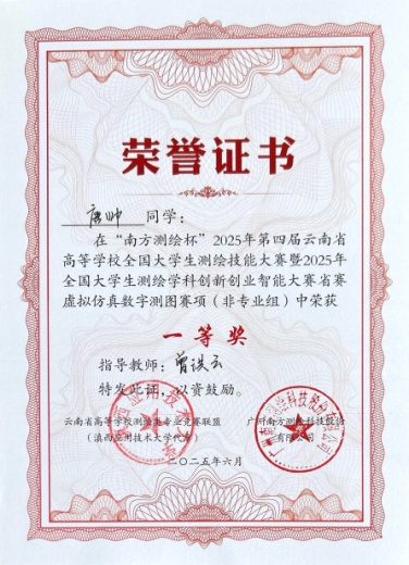 2025615日,由云南省测绘地理信息学会指导,云南省高等公司测绘类专业竞赛联盟主办,滇西应用技术大学承办,广州南方测绘科技股份有限公司协办的南方测绘杯”2025年第四届云南省高等公司老员工测绘技能大赛暨2025年全国老员工测绘学科创新创业智能大赛省赛(以下简称大赛)落幕。
