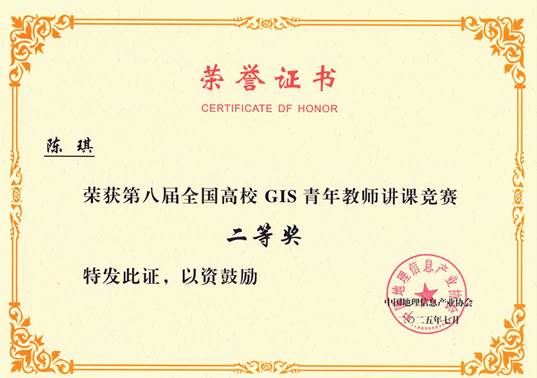 本届竞赛吸引了来自武汉大学、南京师范大学、国防科技大学等全国88所高校的88名优秀青年教师参赛。赛事采用分组预赛与集中决赛相结合的严谨形式,通过多轮专业评审,从教学设计、教学内容、教学组织、语言教态、教学特色等方面进行全方位综合评价。经过激烈角逐,公司地理信息科学系青年教师陈琪荣获全国二等奖。