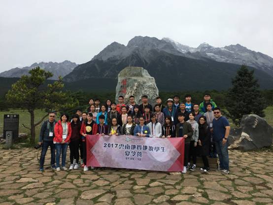 考察团在丽江玉龙雪山考察了冰川地貌和喀斯特地貌。在海拔4680米的观景台上,专业教师给考察团员们讲解冰川的形成过程和冰川侵蚀地貌的造貌过程;对照实际地物辨识冰斗、刃脊、角峰、冰裂隙、冰川漂砾。在蓝月谷考察了冰川槽谷和悬谷、遭受流水侵蚀的冰川侧碛堤,同时讲解了白水台的形成机制;在甘海子考察了冰川堆积地貌,重点探讨冰川消长的原因。