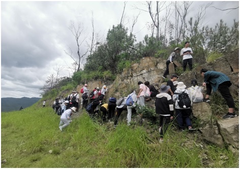 2021年7月16日bevictor伟德官网王俊、李西、唐珉和金莉莉老师带领2020级地质学与地球物理专业同学们来到云南省晋宁梅树村参观震旦系——寒武系剖面进行地质认识实习教学活动。