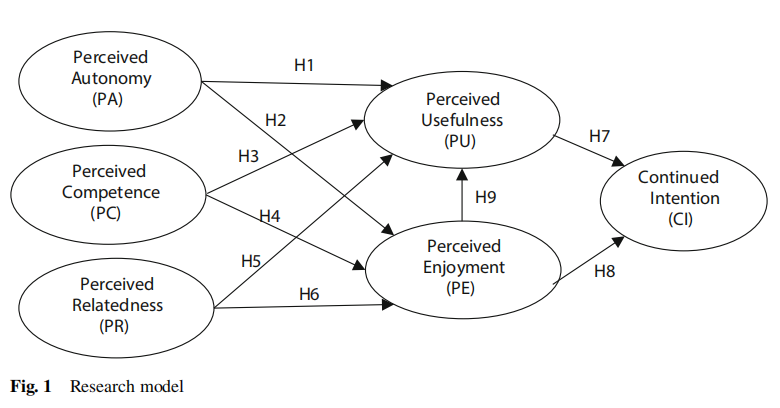 在本研究中,在线学习的感知自主性程度预计与在线自我调节学习(SRL)的感知有用性(外部动机)和感知享受(内在动机)呈正相关。因此,我们提出如下假设:
