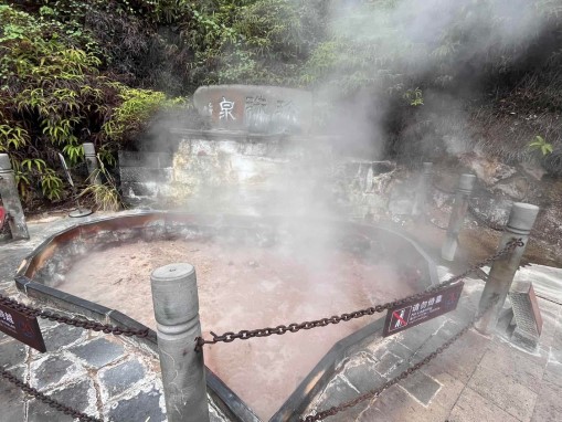 随队伍,脚踏岩浆岩石板向深处走去,所到处无不热气扑面,泉眼怪奇。硫磺独有的刺激性气味弥漫在潮湿的空气中,闷热,闷热。队伍先后经过了美女池,珍珠泉,眼镜泉等,泉眼气泡不断,经历数个春秋。