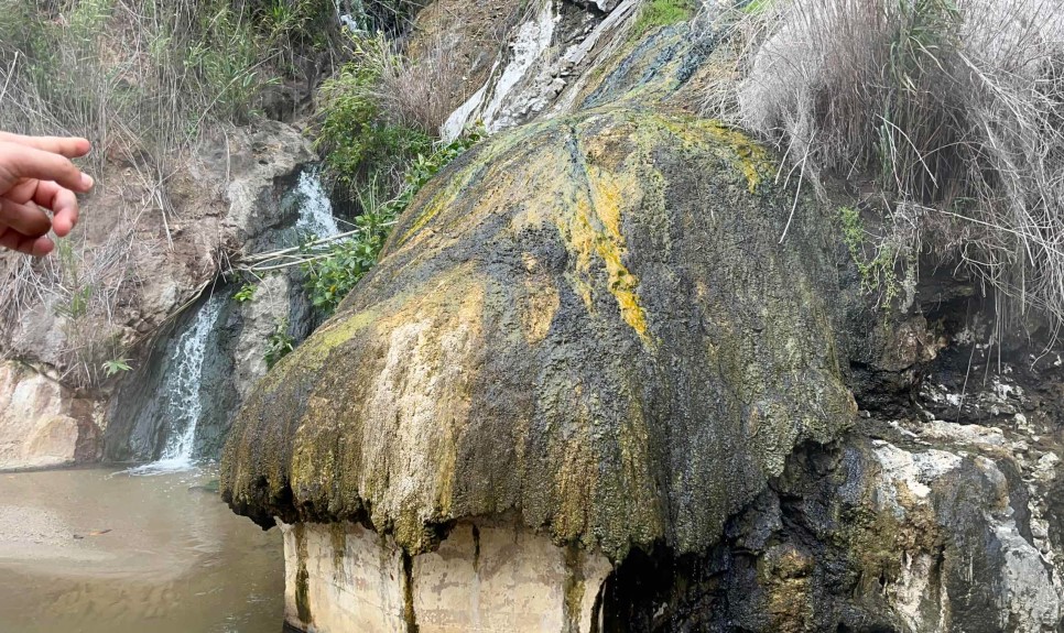 本片区地表水热活动规模大,水热蚀变现象强烈:广泛分布各种沸泉、热泉、温泉、喷气孔、喷气地面和泉华。关于温泉,“温泉水”是地热形态,需要拥有地下深部热源及可循环地下水系统,在静水压力差作用下热水上涌,从岩层裂隙直达地面的严苛过程才诞生;温泉水可分作天然自涌温泉和人工钻探开采温泉两种形式,同时也可根据其化学属性划分为碱性泉和酸性泉,或者参考温度25℃分作“温泉”和“冷泉”......部分温泉可达96℃-102℃,远超绝大部云南地区水的沸点。产生的大量五颜六色的泉华中,钙华是含碳酸氢钙的地热水接近和出露于地表时因二氧化碳大量逸出而形成碳酸钙的白色化学沉淀物,其主要成分为方解石和文石。