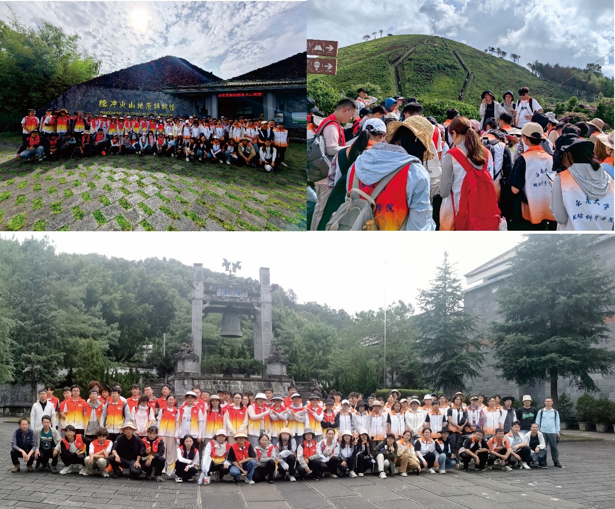 在腾冲火山地质公园,师生一行参观了著名的大空山火山、柱状节理、温泉群等地质景观。王永明、王彦宁、赵旭、李西、何海龙等老师给大家详细介绍了火山作用形成的各种地质现象,并讨论了火山作用与宜居地球形成的内在联系。在充实的专业学习之余,师生一行还参观了滇西抗战纪念馆和国殇墓园,全体师生默哀致敬,深切缅怀为国捐躯的革命先烈。