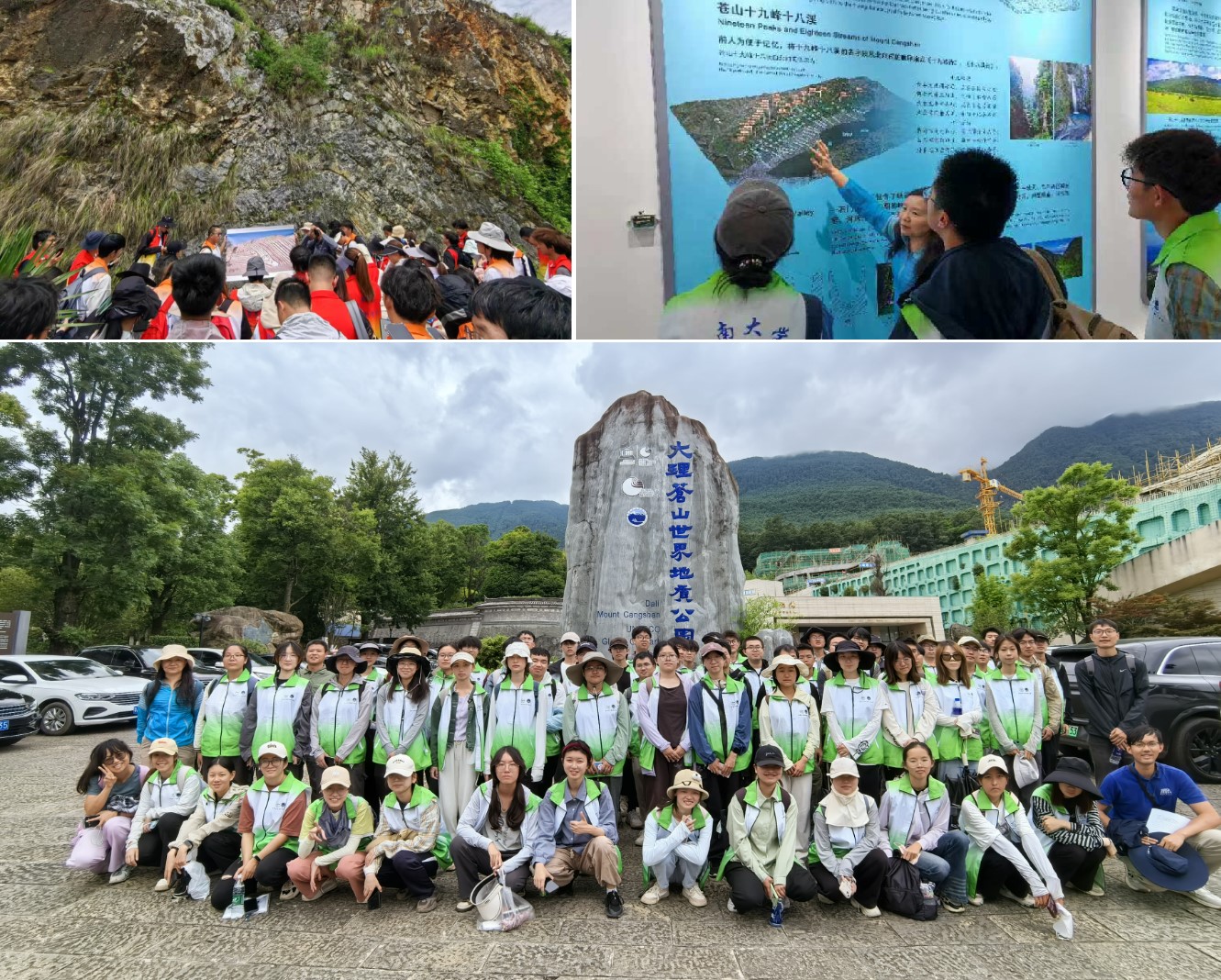 在苍山地质博物馆、苍山世界地质公园。赵志芳、李西、何海龙、罗开老师为同学们讲解青藏高原东缘区域构造演化,断裂与褶皱、地震带等知识。陈琪老师为同学们讲解相关的地理信息知识。随后,在经历艰辛的攀爬后,同学们到达苍山玉带路,实地观察路上各种地质、地貌现象。