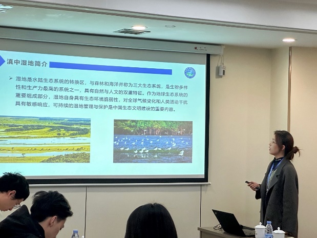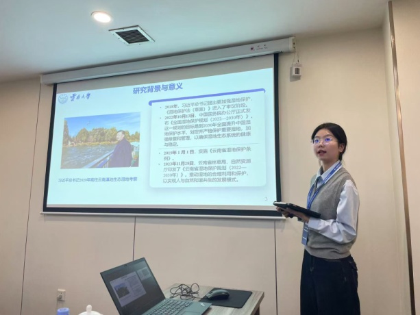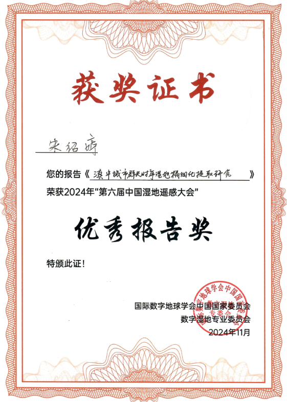 面向大数据和人工智能驱动湿地遥感创新发展的需求,此次大会以“数字湿地,遥感赋能”为主题,共设置了1个主会场和14个分会场。在数字湿地与智慧监管分会场,公司地图学与地理信息系统专业硕士研究生朱绍婷作了题为“滇中城市群长时序湿地精细化提取研究”的报告,展示了在滇中湿地遥感提取与分析中的最新进展,在GEE平台使用随机森林提取滇中城市群长时序湿地数据,通过湿地面积结合实测湿地植被生物量估算滇中城市群湿地碳储量。资源与环境专业硕士研究生罗谨璇作了题为“基于降尺度NTL数据的滇中城市群湿地变化与人为扰动耦合分析”的报告,开展了基于降尺度夜间灯光数据的湿地时空热点挖掘、时空地理加权回归和自适应多维灰色预测模型,对在人类活动与自然条件作用下的1993-2020年间滇中城市群流域湿地变化状况进行相关分析。在大会闭幕式上,朱绍婷同学的报告被评为优秀报告。