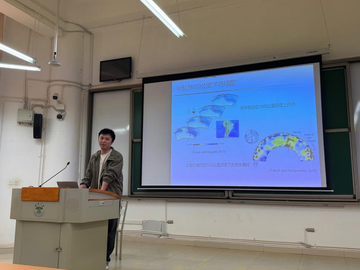 报告中,袁野详细介绍了地下地震1000公里范围内“不连续面”的存在性及其分布情况,并讲解了这一现象在不同地震探测中的检测结果。他指出,尽管在大多数地震活动中此类不连续面常被检测到,但其成因仍未得到确切解释,尤其是在不同规模的地震中,如何准确区分与岩石性质相关的异常体仍然是一个科学挑战。报告还深入探讨了如何通过不同频率的地震数据分析异常体的分布,以及如何结合全球和局部的地震数据模型,进一步理解地幔不连续面的成因与特征。袁野强调,研究不连续面不仅有助于深入理解地幔结构,还有助于推动地震预警和灾害预测技术的发展。