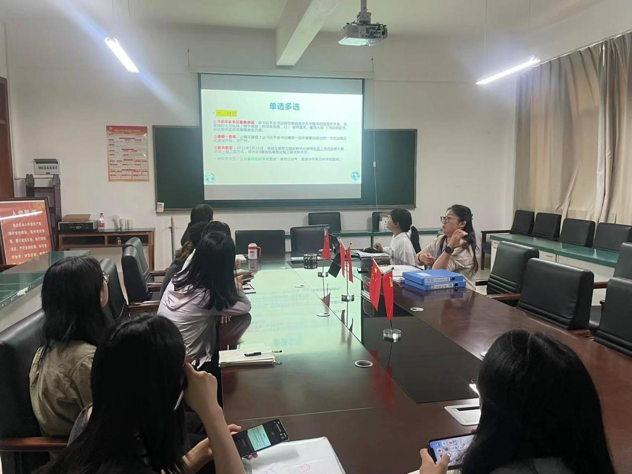 韩雪老师还向参会同学分享了如何在考试中做好答题结构以及面试的注意事项等,院团委唐薇老师就近期时政热点问题进行了有关分享,座谈会中几位老师还给同学们推荐了一些对求职有帮助的公众号。