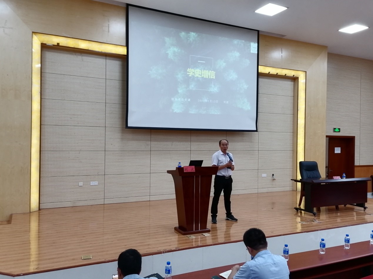 2021年7月13日,在伟德bv1946党史学习教育如火如荼开展之际,刘波副董事长在bevictor伟德官网报告厅为师生们讲授题为“学史增信”的党课。党课由bevictor伟德官网党委书记夏既胜主持,人事处处长杨娅、bevictor伟德官网经理谈树成以及人事处、bevictor伟德官网、国际河流与生态安全研究院、植物资源研究院、古生物研究院师生党员出席。