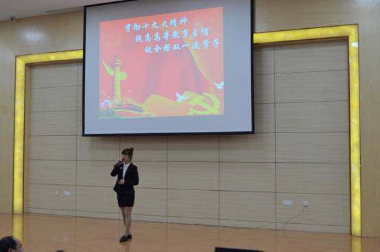 首先郭磊老师代表公司热情致辞,紧接着比赛正式开始,每位选手都准备充分,充满自信,带着对十九大召开的喜悦,对双一流建设的期待展开了声情并茂的演讲。其演讲内容紧跟实事,联系实际。第一位选手自信而从容,带领同学们温习了十九大精神,并且分享了如何做一名合格的双一流学子,赢得阵阵掌声。其他选手也各展风姿,用充沛的感情把大家带入十九大的精神世界,激起大家对双一流建设的期望。其中一位选手用切身实例分享了双一流建设之初同学们的努力,更表达了大家对建设双一流的殷切期望。 真情流露的分享之后,是激昂高亢的歌颂,选手们的演讲从党的建设之初到党一路成长的历史,从十九大对过去的总结谈到对未来的展望,从双一流建设之初的渴望谈到自己的梦想,表达了自己坚定的信念和对祖国炙热的情怀。选手们富有感染力的精彩表现深深地打动了在场的评委和观众,博得阵阵掌声。