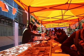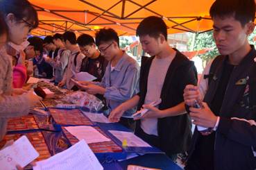 认真负责工作的工作人员们正在热情接待同学们,完成任务的同学可以获得印章