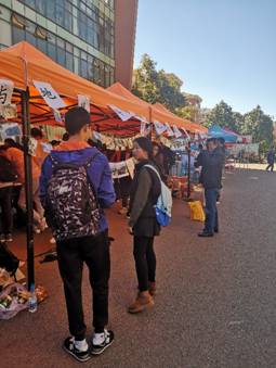 金蛋中的礼物其实都不甚贵重,但是这种难得的神秘体验吸引了很多同学。由于开奖时间是固定的,大家早早在砸金蛋处等待活动开始,一个男生在周六中午非常幸运地砸出了我们精心准备的超级大奖——各种各样精致的小石头大礼包!