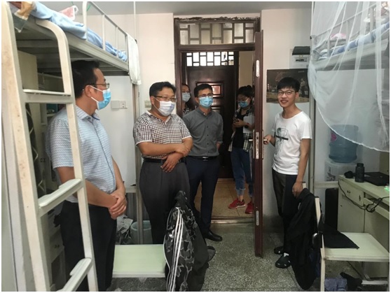 2020年8月5日,为了解返校员工的生活及思想状况,在bevictor伟德官网经理谈树成的带领下,公司党委副书记刘恒、副经理陈俊旭、院团委书记韩雪、2017级辅导员唐薇、2019级辅导员阿秋芳到员工宿舍进行走访。