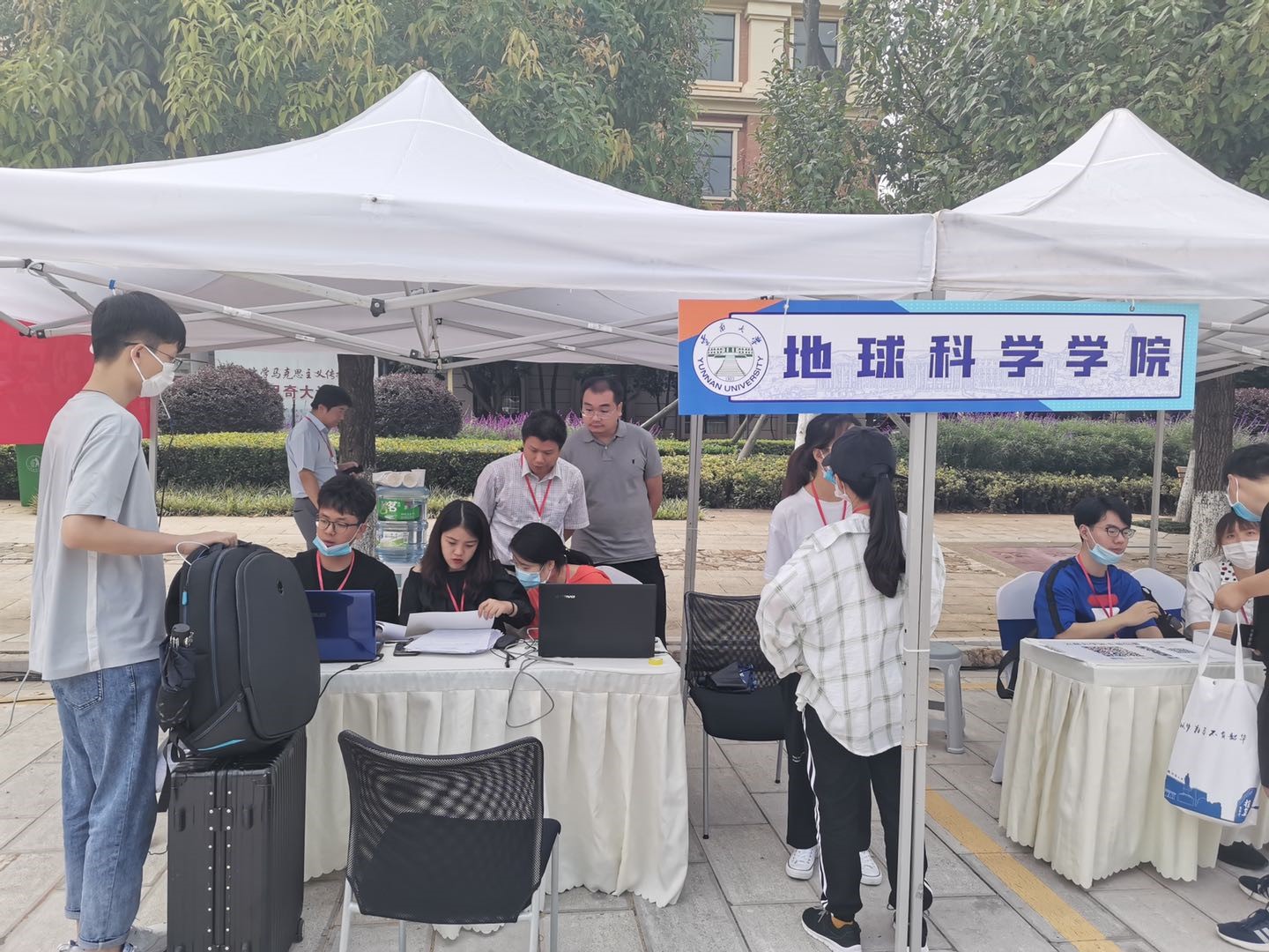 在大家地热情工作下,新同学严格遵守疫情期间报到的相关要求,有序进入校园,有序进行报道。