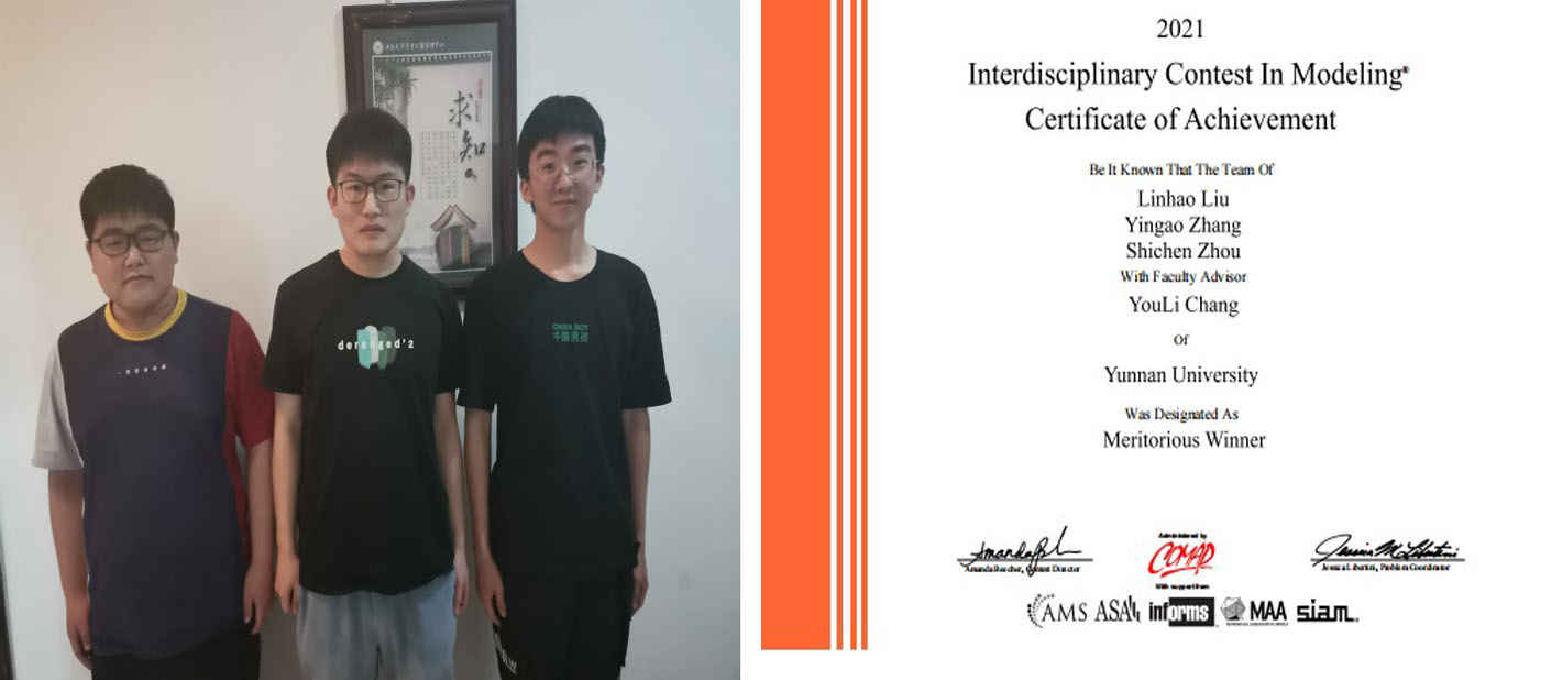 获奖同学合影 2021美赛M奖证书
