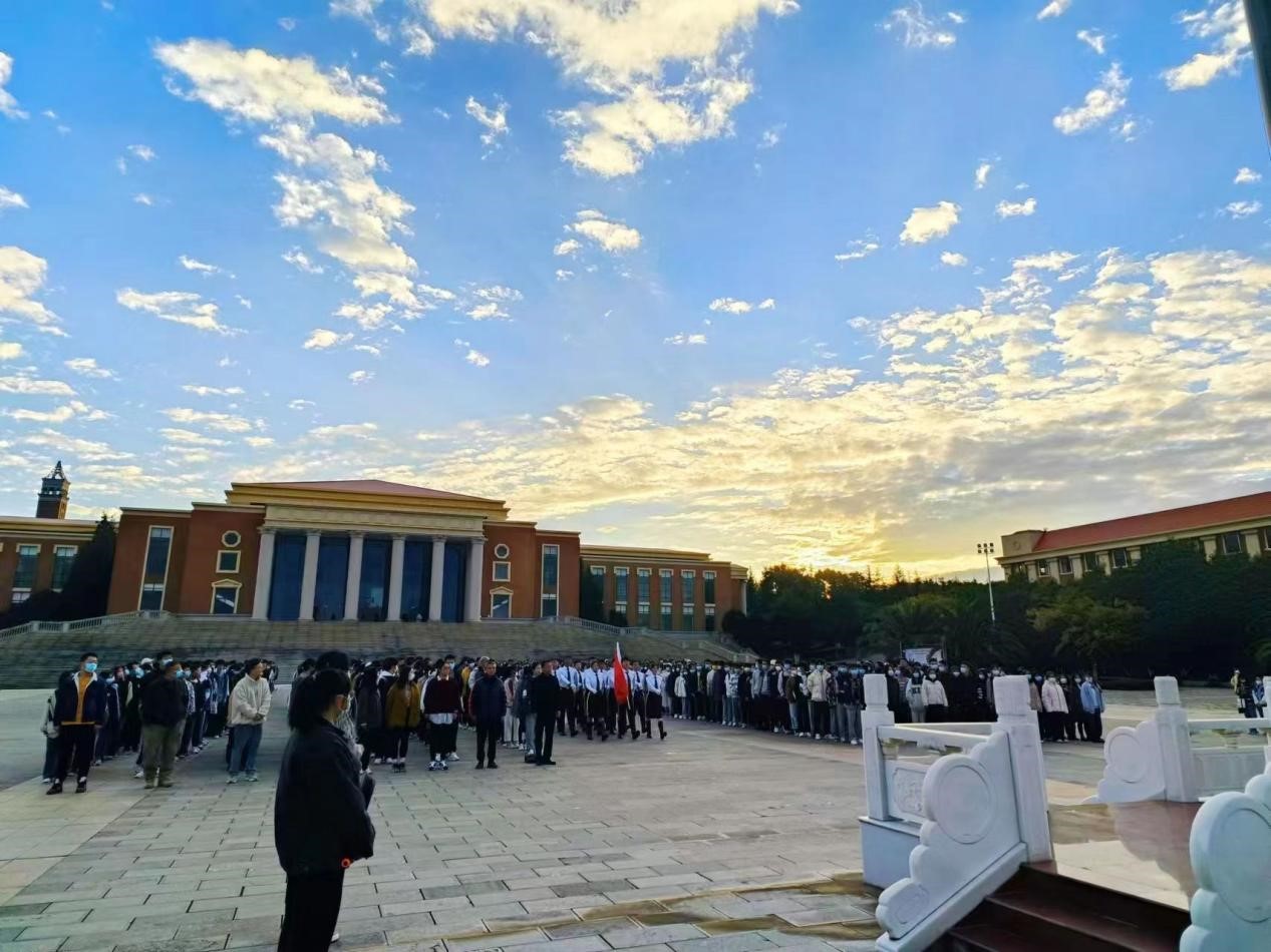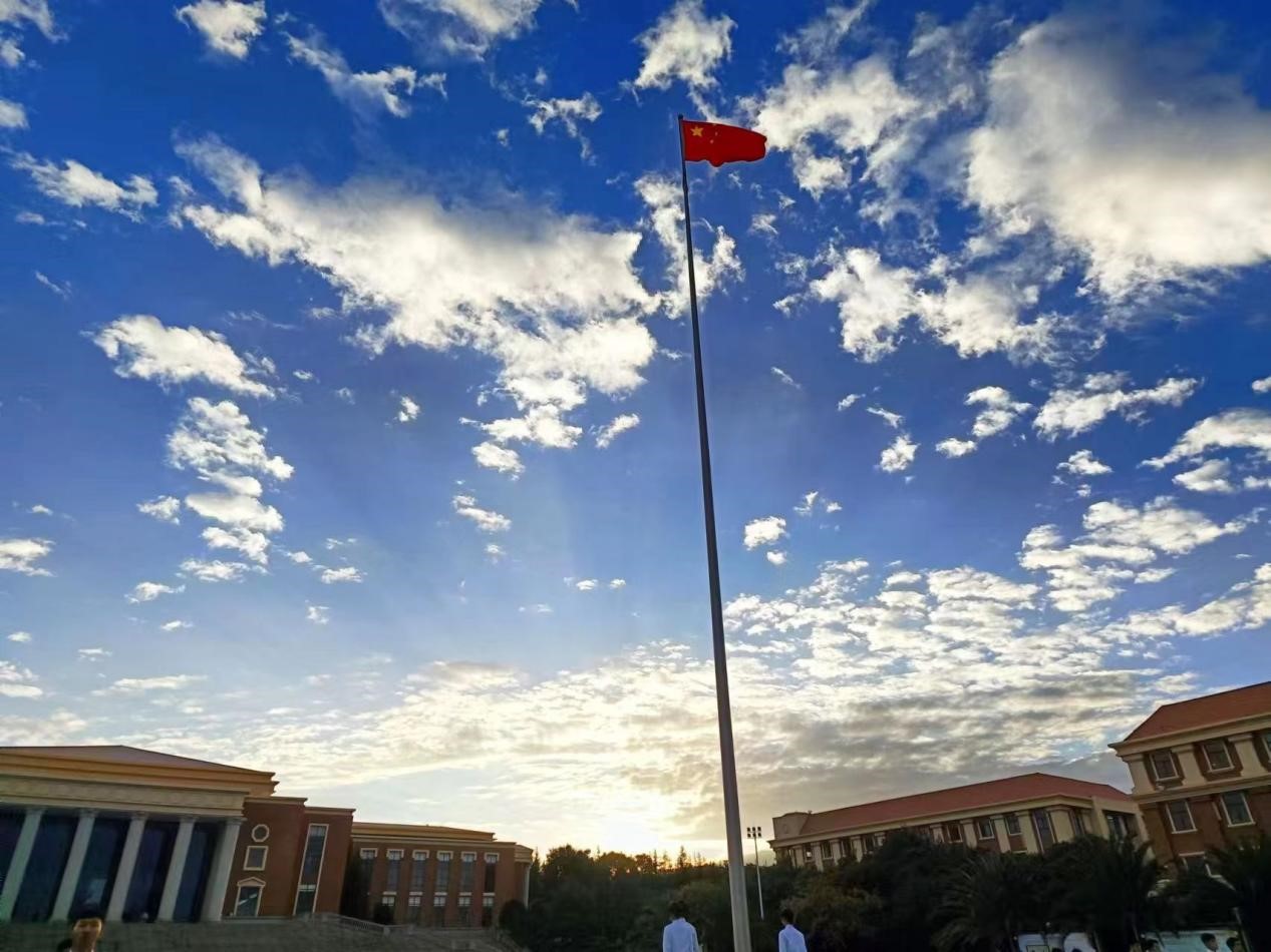 最后,在2022级王简同学的指挥下,同学们在五星红旗下唱响《我和我的祖国》,歌声在广场上久久回荡。此次升旗仪式正值党的二十大期间,师生们深深感受到了新时代下中国的伟大。希望大家能为下一个百年目标做出贡献,为祖国日渐繁荣强盛而奋斗。