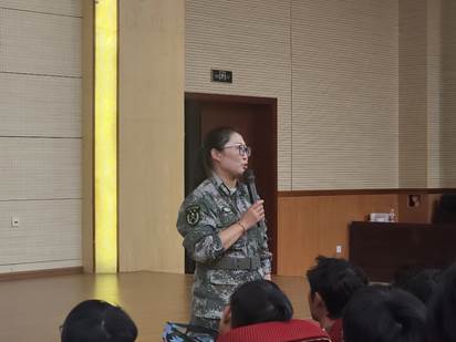 宣讲活动最后,2022级本科生辅导员韩雪老师对活动进行了总结。并结合自己员工时代的亲身经历呼吁同学们跳出生活的舒适圈,保持奋斗的姿态,加强专业知识的学习,踊跃报名参军,以青春之力为国家建设添砖加瓦。