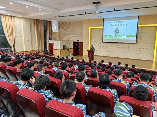 工商管理与旅游管理公司退役士兵周彰全同学从他的员工时代讲到了军旅生活,以幽默亲切的话语为同学们讲述了他在服役期间的精彩点滴与各方面的巨大收获。作为军训教官,他还对此次军训进行了总结,对在场的同学进行鼓励,期望同学们无论是在军训过程中还是以后的学习生活中,都能磨练意志、锤炼品格、充分展现地科学子积极向上的精神风貌。