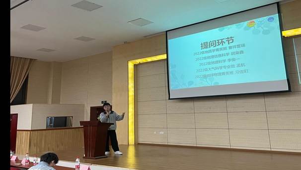讲座第一部分由2022级地质学专业曹祥雲瑞同学、地理科学专业李俊一同学、大气科学专业孟航同学进行学习经验分享。
