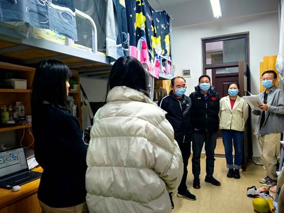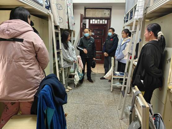 在毕业班员工宿舍,夏既胜一行了解备战考研同学目前的备考状态、复习情况等,鼓励同学们在坚持做好最后冲刺阶段复习的同时,要调整好心态。针对中间年级的员工,叮嘱同学们临近期末做好期末复习,也做了关于安全方面的一些提醒。
