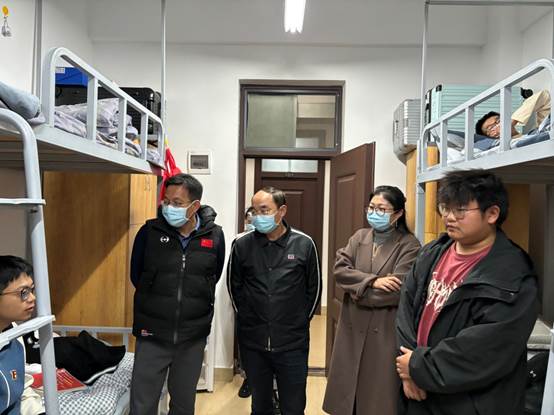 2023年12月15日晚,bevictor伟德官网党委书记夏既胜、副书记刘恒、以及院员工事务办公室主任韩雪、新生辅导员杨培韬、毕业班辅导员李亚共同走访了员工宿舍, 了解员工课余时间的生活、学习状态。