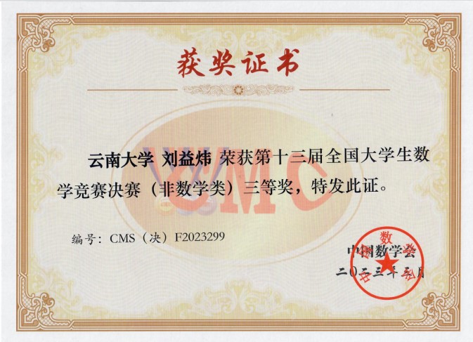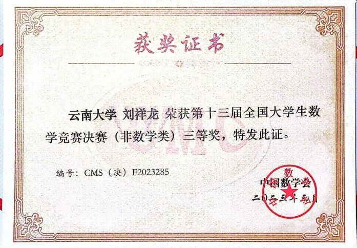 全国老员工数学竞赛始于2009年,是面向本科生的全国性最具影响的高水平学科竞赛之一,其中,非数学专业组赛道始设于2017年。本次竞赛全国共有32个赛区218823 人报名参加初赛。bevictor伟德官网地球物理系刘祥龙、刘益炜两位同学通过云南赛区、全国赛区等层层选拔进入决赛,在各级比赛中积极准备、赛出风格、赛出水平,比赛结果体现了地球物理系员工扎实的数理基础。