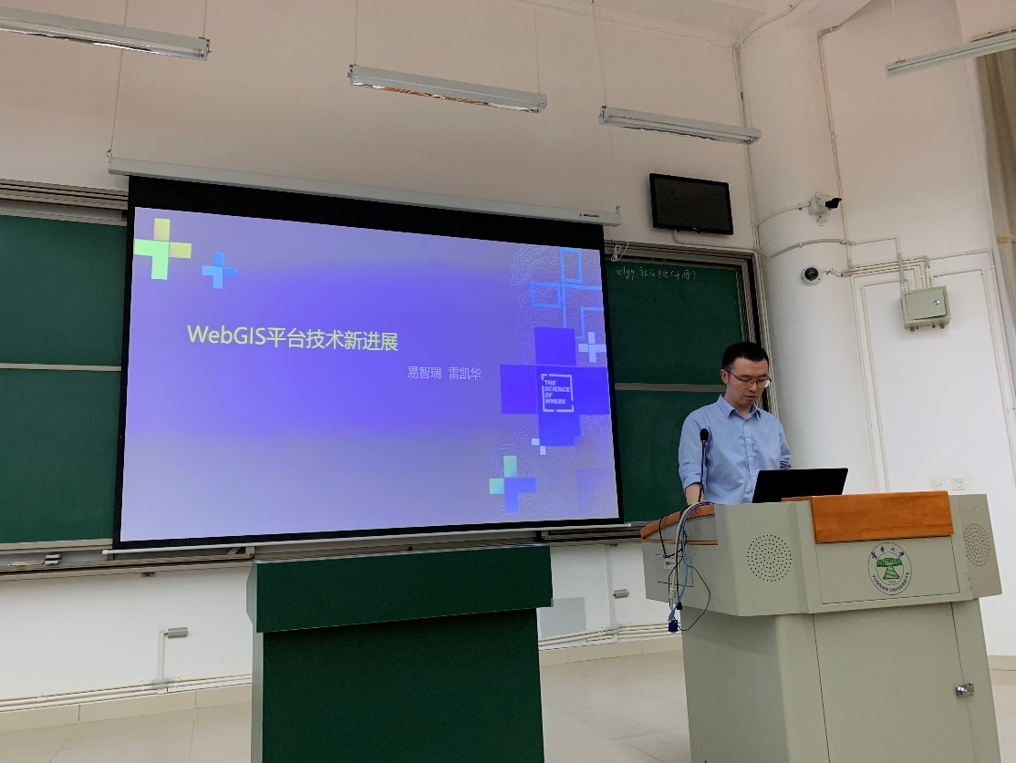 2021525日,易智瑞信息技术有限公司副总裁杜佃瑞一行5人到公司开展校园宣讲和专业技术交流。杜总首先介绍了地理信息科学的应用前景,并指出了地理信息科学员工应具备的基本素养。随后,易智瑞公司的技术人员分别从计算机科学、地理学以及遥感应用等领域介绍了地理信息科学的应用前沿技术。易智瑞科技有限公司在报告中指出地理信息科学在历史案例中的重要应用,说明了地理信息并不是简单的IT应用,而是存在地理思考的对地球信息的获取、存储、分析与决策支持。并详细介绍了地理信息处理的各个阶段的先进方法,让同学们对学科有了更全面的认识,也为同学们指出在学习中应该注意培养的能力,引来同学们的阵阵掌声。