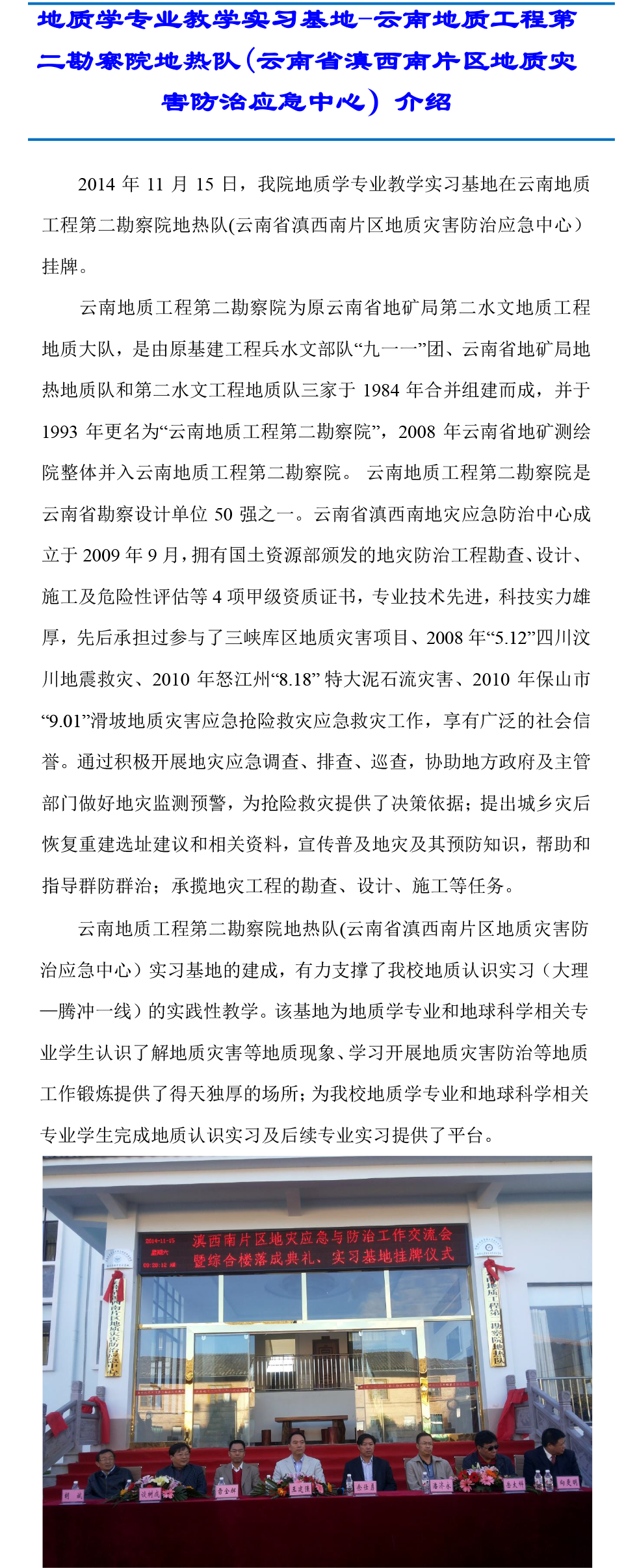 您现在的位置: 首页 >> chinese >> 院系 >> 地质学系 >> 实习 >> 实习基地 >> 云南省地质工程第二勘查院地热队实习基地