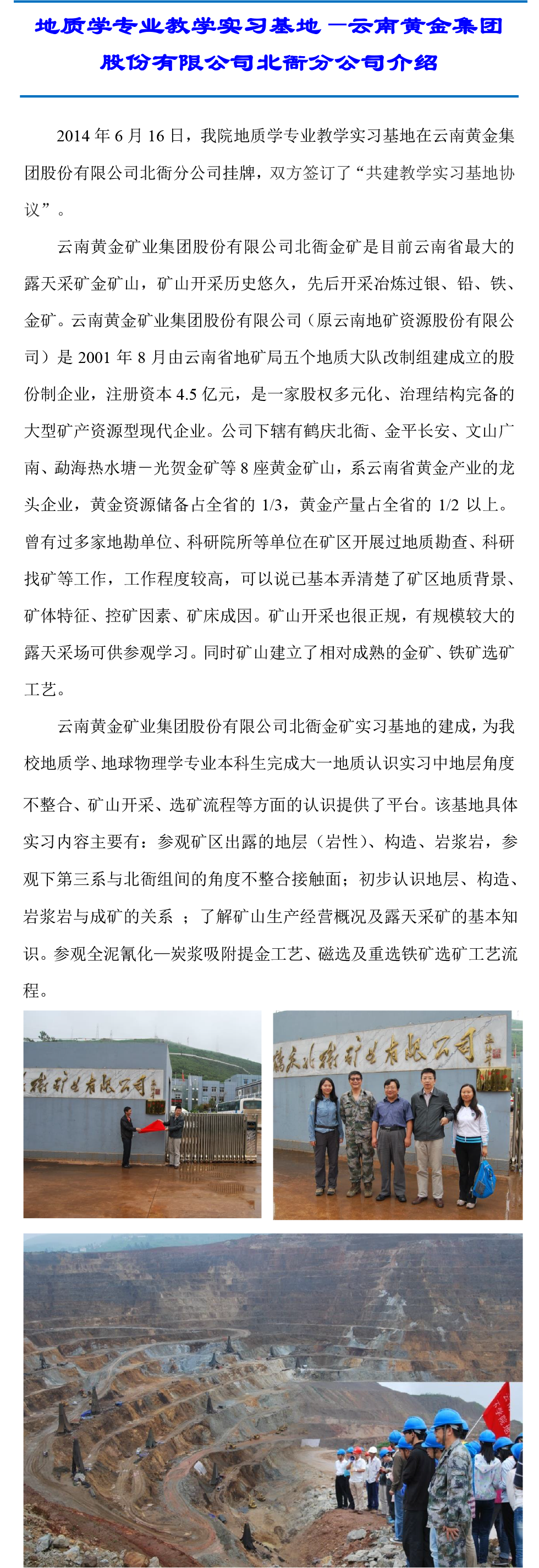 您现在的位置: 首页 >> chinese >> 院系 >> 地质学系 >> 实习 >> 实习基地 >> 云南黄金集团股份有限公司北衙分公司实习基地