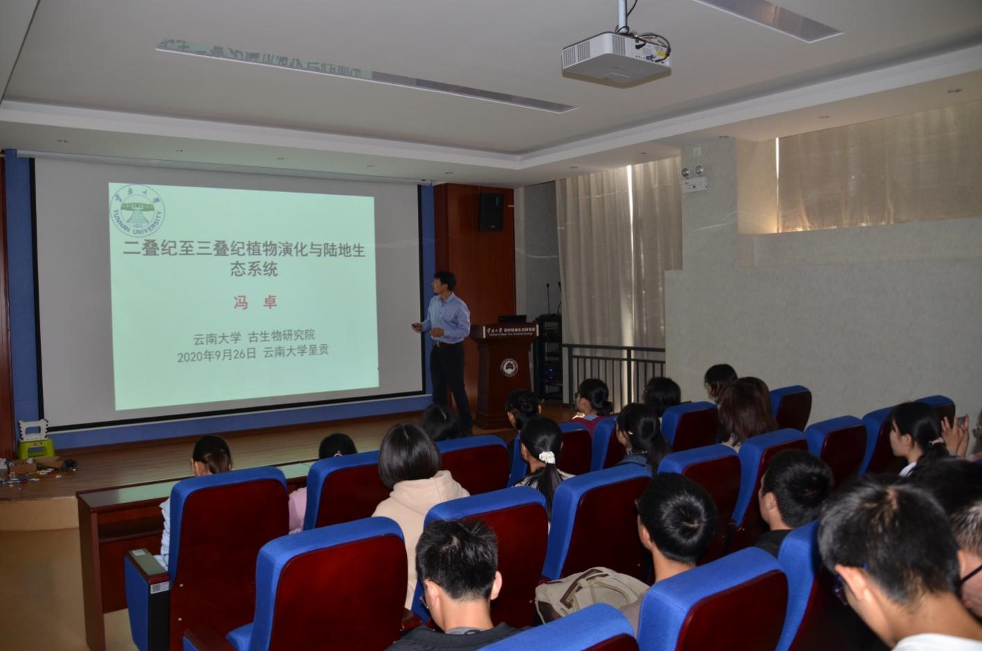 2020年9月27日下午,应公司王俊副教授邀请,深时陆地生态研究所所长冯卓研究员为地质学专业2020级新生上了两节题为《二叠纪至三叠纪植物演化与陆地生态系统》的地质学前沿导论课。