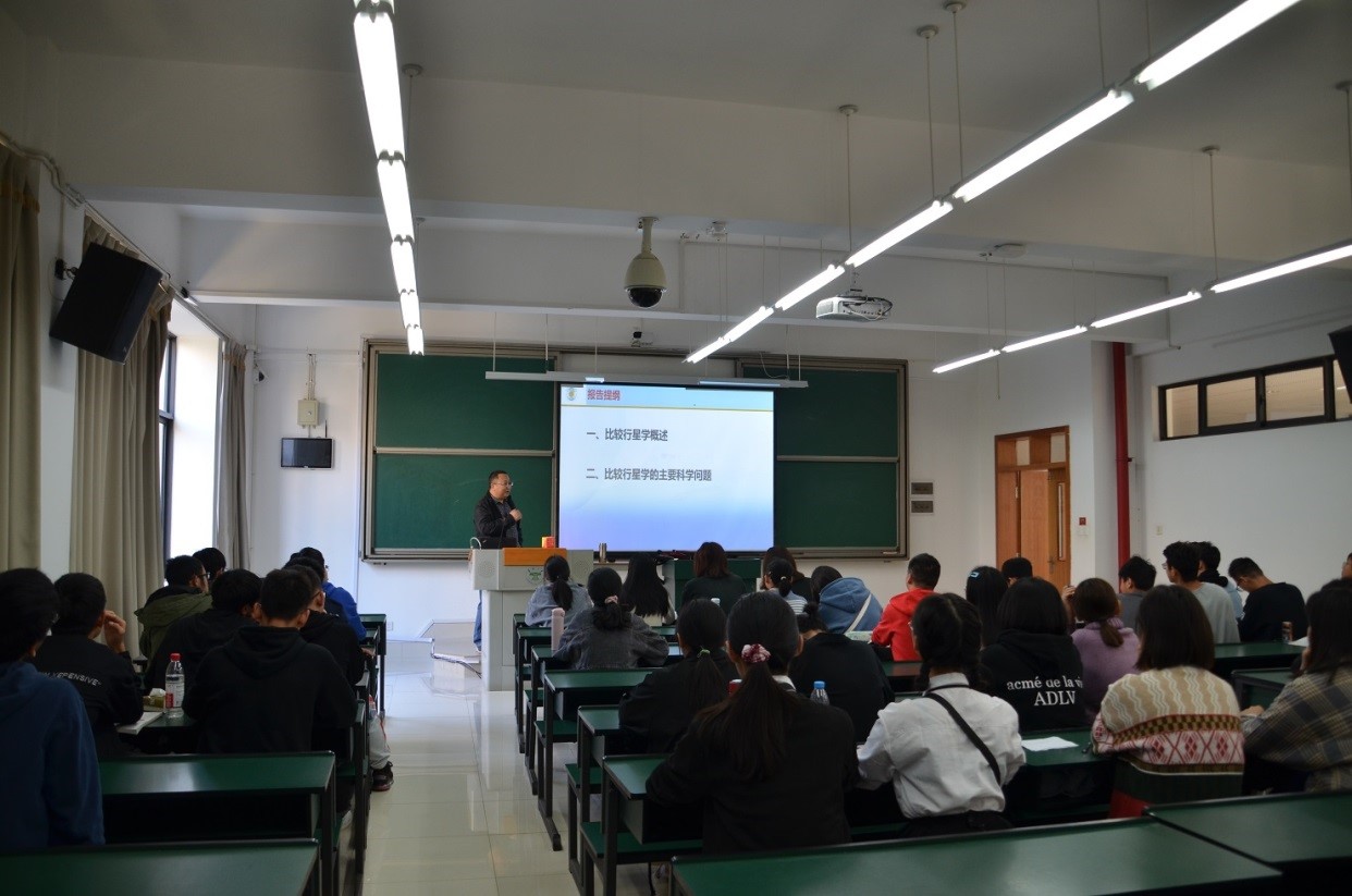 在课程中,刘建忠研究员从两个方面给在场师生介绍了比较行星学:一是比较行星学的概况、研究范围与对象、研究途径与方法和研究简史与前景;二是目前在比较行星学领域存在的12个科学问题。刘建忠研究员不仅给在场的地质学专业新生普及了相关背景知识,还在学科前沿方面给员工们提出了殷切的希望。课程生动有趣,深入浅出,极大地激发了员工们对行星科学的兴趣,并让他们了解到了众多前沿学术难题。
