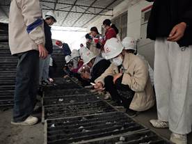 12月21日下午2点,实习团队抵达玉溪大红山矿业有限公司。在技术人员的引导下参观了矿山的中控室。通过智能机器人和技术人员的讲解,同学们全面了解了矿山的运作流程、矿石的采选及运输系统、实时动态监控系统及人工智能在矿山建设中的应用等。在感叹科技快速发展的同时,同学们也深刻认识到了智能化矿山管理的重要性。随后,实习团队前往矿石堆和岩心库,在技术人员的讲解下,详细了解了大红山铁铜矿床的主要矿石类型和特征,并采集了典型样品。
