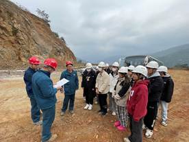 12月22日上午9点,实习团队再次来到大红山矿业有限公司,在技术人员的带领下参观了露天采场。通过带队老师和技术人员的详细讲解,同学们实地观察了矿体的形态、规模、产状等特征,并现场对矿床的形成过程和成因进行了讨论,加深了对理论课程内容的理解。
