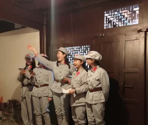 毛泽东、朱德、周恩来等革命领袖于一九三五年四月带领中共中央红军总部在寻甸县柯渡镇丹桂村作了渡江前的重要部署,师生党员参观了此次部署工作的驻地旧址、总参谋部作战室,以及毛泽东、周恩来、刘伯承、朱德等同志在丹桂村的居室及纪念物等。在活动中,同志们看到老一辈无产阶级革命家面对复杂凶险的外部环境、艰苦的居住条件以及百倍于我的势力压力,他们坚定的信念、执着的追求、伟大的理想和不屈的精神,纷纷表示受到了一次深刻的革命传统教育,增强了党性观念和宗旨意识。