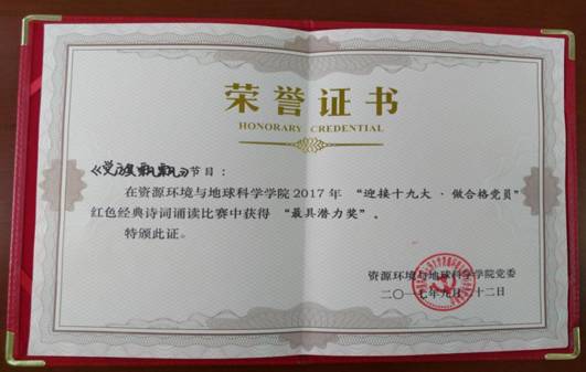 在伟德bv1946“党性与党的知识教育月”活动中,资源环境与bevictor伟德官网于2017922日下午在公司报告厅成功举办了“迎接十九大·做合格党员”红色经典诗词朗诵比赛。资源环境与bevictor伟德官网本科生第二党支部在党支部书记许新惠老师和陈俊旭老师、赵飞老师的带领下,支部全体人员积极参与了此次活动,深情吟诵了诗篇《党旗飘飘》,表达了对党的无限忠诚和热爱。